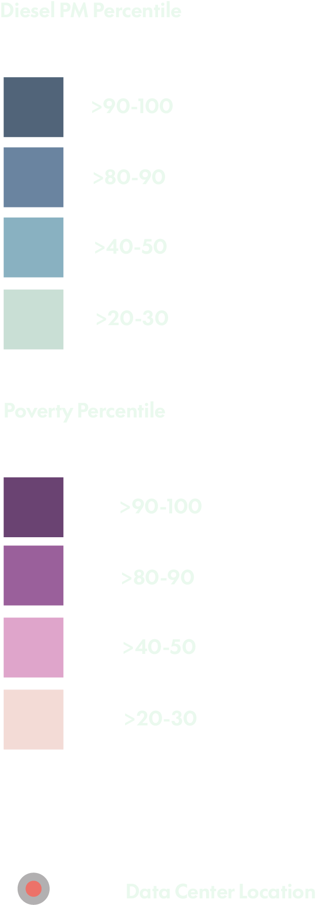 Another thing to consider, not all development sites are created equal for these buildings. An example being Californian communities that have a high concentration of data centers. By examining the existing pollution burden and diesel levels these communities face in comparison to a map indicating existing centers, a clear correlation between poor public health indicators and data center locations in California is revealed. This isn’t to say data centers caused this poor public health; instead it shows that data centers are clustered in already polluted areas with vulnerable outcomes. These areas are most notably polluted by diesel particulates and use of fossil fuels, producing fumes residents have no other choice but to breathe in.